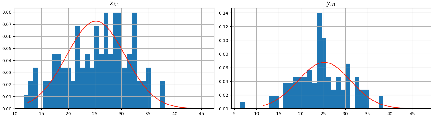 xb1 = 40. + (15. - 40.) * np.random.randn(100)